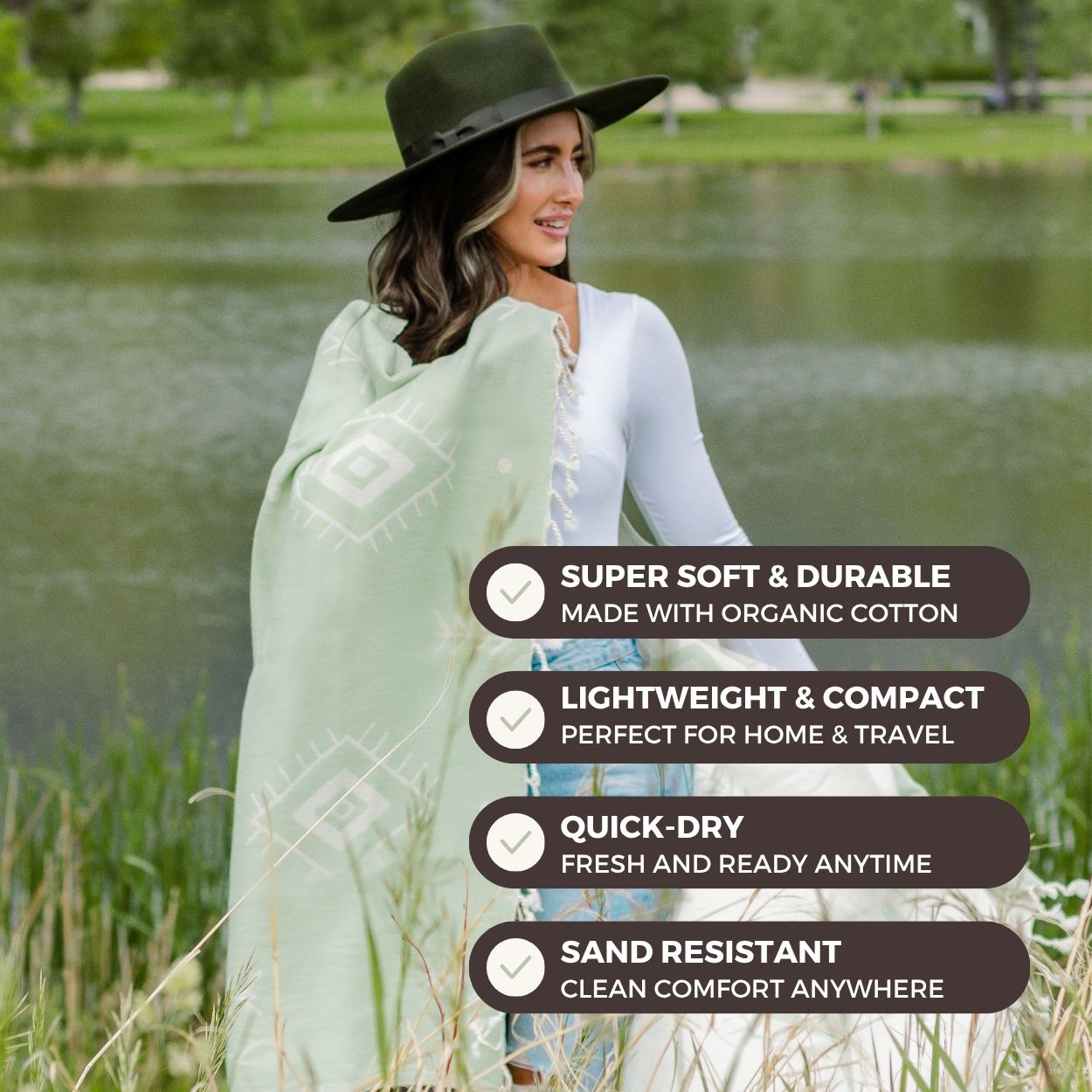 Crafted with a unique double-sided weave, Feshka towels feature a reversible pattern for added elegance. Lightweight, quick-drying, and soft, they’re perfect for home, travel, or the beach.