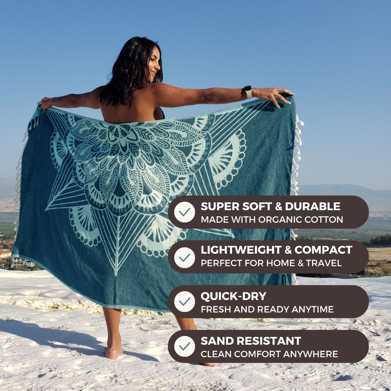 Crafted with a unique double-sided weave, Feshka towels feature a reversible pattern for added elegance. Lightweight, quick-drying, and soft, they’re perfect for home, travel, or the beach.