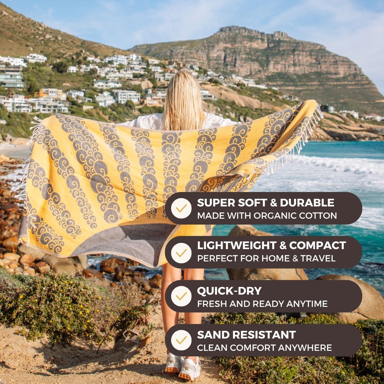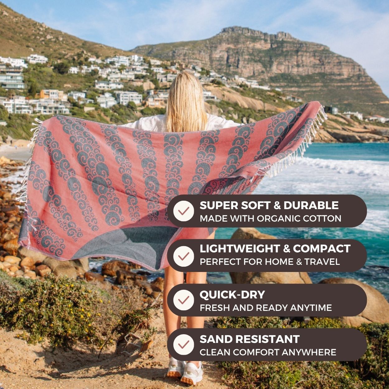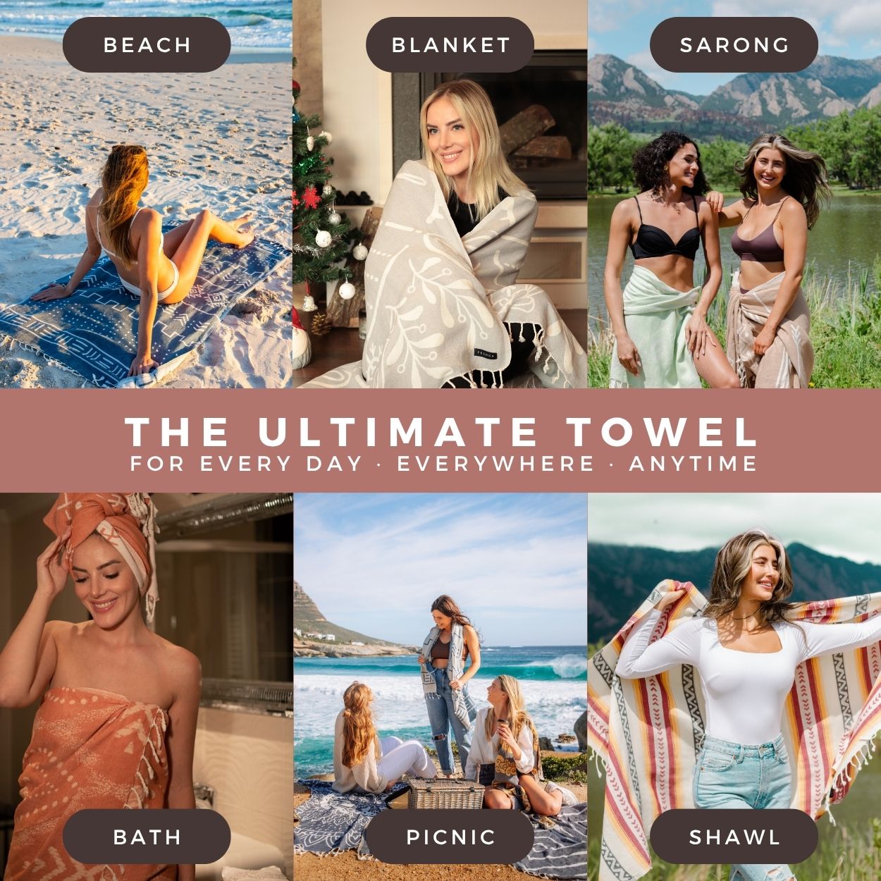 Crafted with a unique double-sided weave, Feshka towels feature a reversible pattern for added elegance. Lightweight, quick-drying, and soft, they’re perfect for home, travel, or the beach.