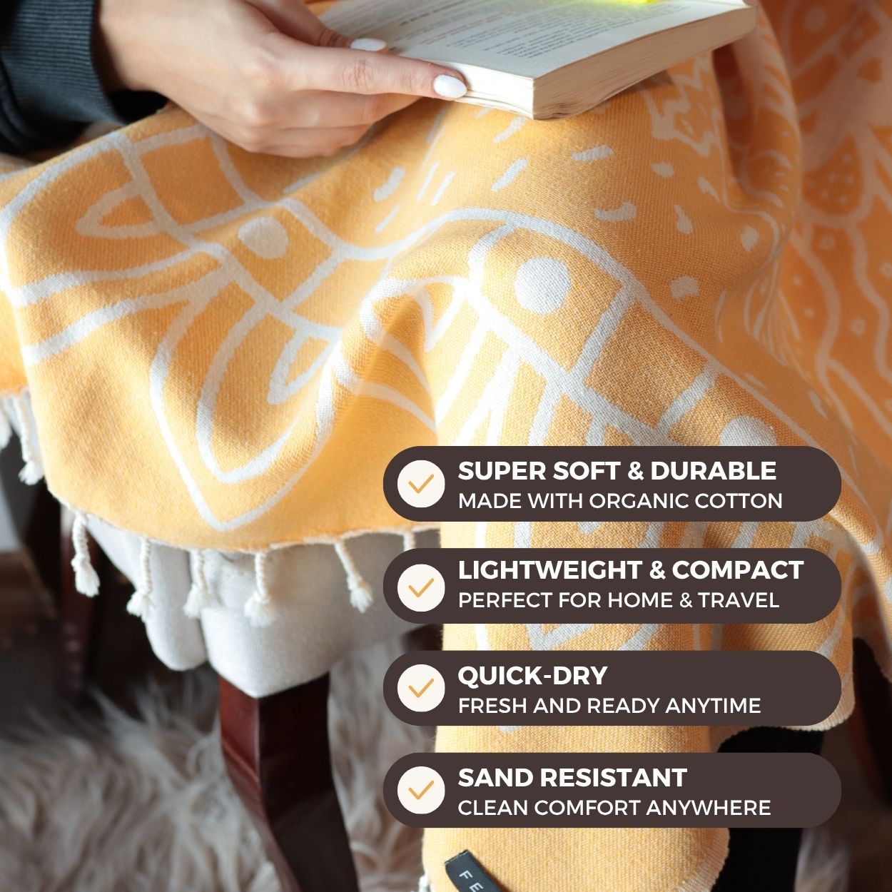 Crafted with a unique double-sided weave, Feshka towels feature a reversible pattern for added elegance. Lightweight, quick-drying, and soft, they’re perfect for home, travel, or the beach.